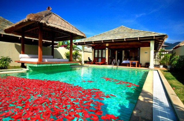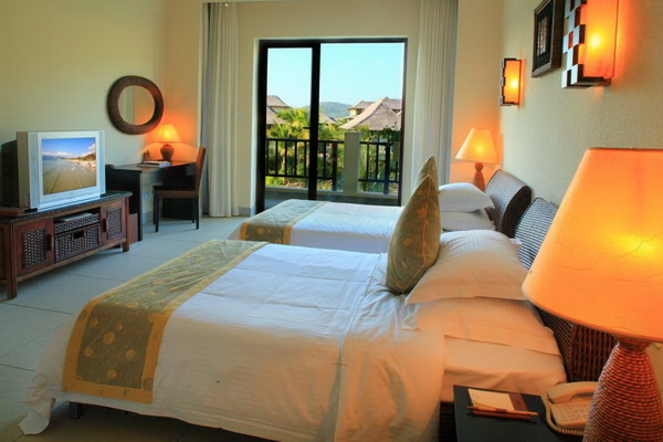 三亞亞龍灣五號(hào)度假別墅酒店位于亞龍灣國(guó)家AAAA級(jí)旅游度假區(qū)內(nèi),是由108棟獨(dú)具熱帶濃郁巴厘島風(fēng)情的園林別墅和1棟會(huì)所組成。酒店與大海相臨,匯聚人脈,盡享上流生活貴胄之尊;與高爾夫球場(chǎng)互倚,吸納廣袤大地之靈氣,成就一方純美俊景于眼前。系當(dāng)前中國(guó)首家超大型至尊濱海度假別墅區(qū)。三亞亞龍灣五號(hào)度假別墅酒店總占地面積200畝,總建筑面積4.5萬(wàn)平方米。其中別墅建筑面積3.6萬(wàn)平方米;會(huì)所面積8千平方米;綠地面積9.5萬(wàn)平方米,綠化率達(dá)71%;并建有約1.4萬(wàn)平方米的人工湖泊。三亞亞龍灣五號(hào)度假別墅酒店由九種不同類型的單體別墅組成。戶型包括行政別墅、三居別墅、四居別墅、情侶別墅、會(huì)所客房、五居別墅、國(guó)王別墅和總統(tǒng)別墅。每戶均設(shè)客廳、餐廳、廚房、保姆房及庭院、泳池、花園、蓮花池、SPA亭、車位,將古樸與現(xiàn)代,開(kāi)放與私密完美結(jié)合,追求“有若自然”的新貴族風(fēng)范。酒店將“中式管家”服務(wù)與現(xiàn)代高級(jí)度假酒店完美結(jié)合,首創(chuàng)了中國(guó)品質(zhì)海濱度假別墅酒店的全新服務(wù)模式。客房提供冰箱、迷你吧、嬰兒床、叫醒服務(wù)、沙灘接送、送餐等服務(wù),所有別墅均可免費(fèi)上網(wǎng)。