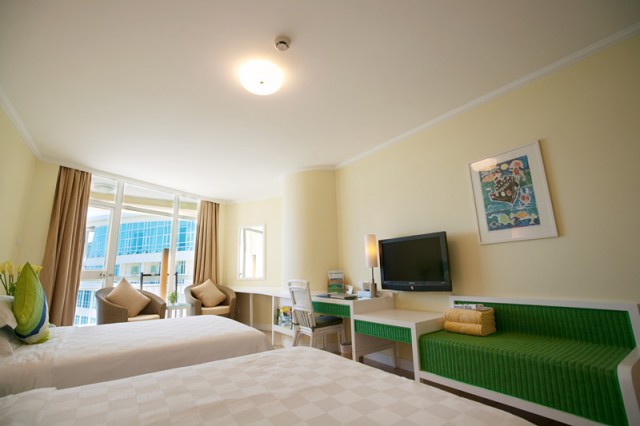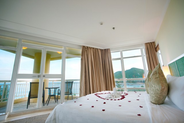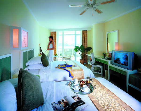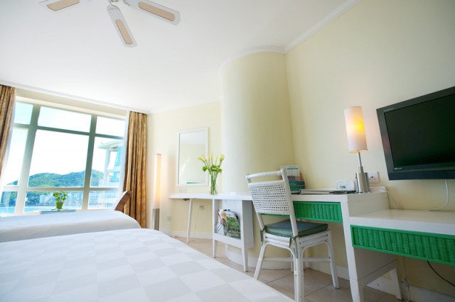 豪華海景房,面積35平方米,樓層2-9層,有陽臺(tái),180度海景,大床(2*2米),雙標(biāo)(1.35*2米),90%有浴缸 免費(fèi)寬帶