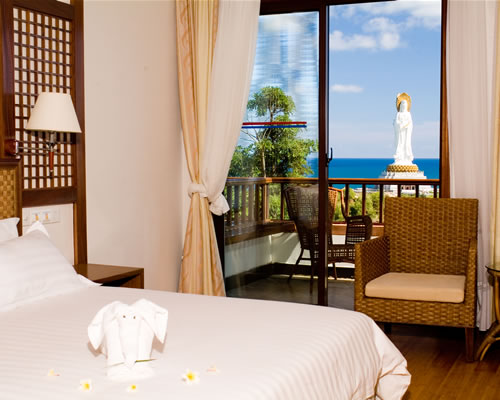 三亞南山迎賓館位于國家5A級景區(qū)南山文化旅游區(qū)內(nèi),距三亞市區(qū)42公里,距三亞鳳凰國際機(jī)場30公里,按五星級標(biāo)準(zhǔn)投資興建。獨具佛教文化特色、黎鄉(xiāng)文化特色和熱帶雨林風(fēng)格的別墅式酒店迎賓,坐落于象征無上智慧的妙金山菩提園之側(cè),與108米南山海上觀音圣像相應(yīng)對。進(jìn)入酒店可以親身體驗佛教文化、觀賞熱帶雨林園林景觀,瞻仰世界上最高的海上露天大佛。祈愿觀音菩薩時刻的護(hù)佑,感受和平、慈悲、智慧的清涼勝境。代建筑風(fēng)格,二十一棟遠(yuǎn)古式的別墅錯落妙金山菩提園間,共有二百二十八間各式客房,房間裝飾典雅、別致,設(shè)備齊全,并配有獨立海景觀佛陽臺。海天佛國,利樂莊嚴(yán),朝南海觀音,沐凈土福澤。有可容納800人的全海景素齋餐廳、主營淮揚菜系的海景中餐廳等配套設(shè)施一應(yīng)俱全。是您觀光、休閑、度假及朝圣的福澤之選。