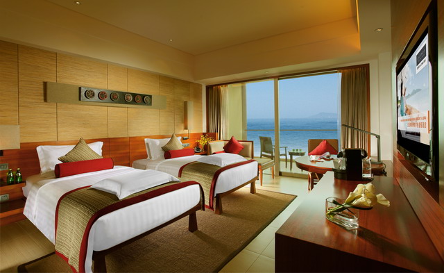 豪華海景房,面積45平方米,樓層2-12層,有陽臺,120-180度海景,大床(1.8*2米),雙標(1.2*2.1米),有浴缸,免費寬帶