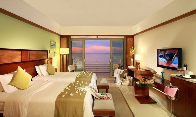 高級海景房,面積43平米,樓層3-11,無陽臺,大床(2*2米),無浴缸,免費寬帶