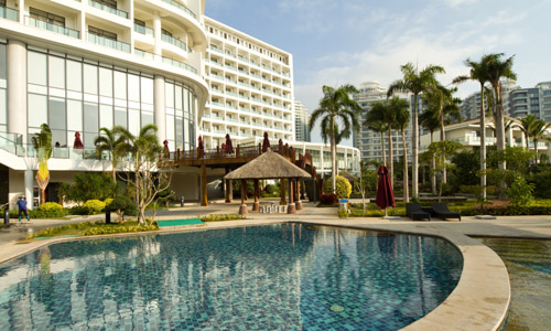 三亞龍悅海景大酒店是由北京鑫地集團(tuán)投資興建,是一家集旅游度假、商務(wù)休閑于一體的高端復(fù)合型精品海景酒店。酒店位于中國海南島南端的三亞市三亞灣西岸,俯瞰壯麗的三亞灣海景和西島, 距三亞鳳凰國際機(jī)場10分鐘車程, 距離市區(qū)僅8分鐘車程;酒店建筑面積35000平方米,與著名的天涯海角、 南山佛教文化苑、 南山大小洞天、 西島和三亞國際高爾夫球場近在咫尺。酒店擁有各式海景房、海景套房共344間(套),均配有液晶電視、智能空調(diào)、頂級床上用品,配以超大觀景陽臺,可一覽海天之間的蔚藍(lán)深韻。